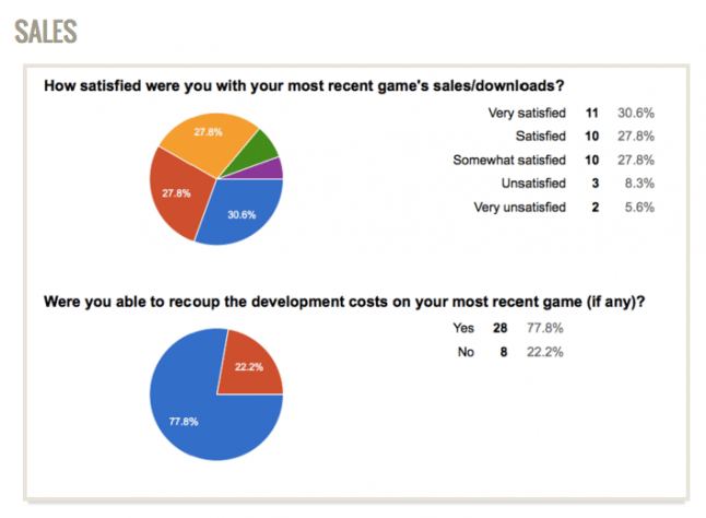 Despite that, questions about developer satisfaction and development costs did reveal some interesting tidbits, with roughly 78 percent of those asked claiming they managed to recoup the total development costs of their latest release.